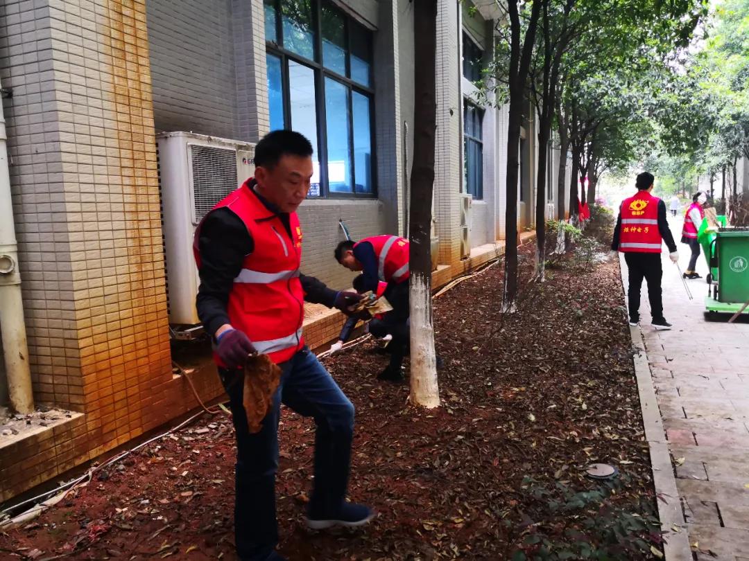 活動得到了郴州高新區機關第三黨支部的大力指導。炬神電子黨支部書記郭小雷身先士卒,帶領大家清掃道路垃圾、花壇枯枝敗葉,一派熱火朝天。
