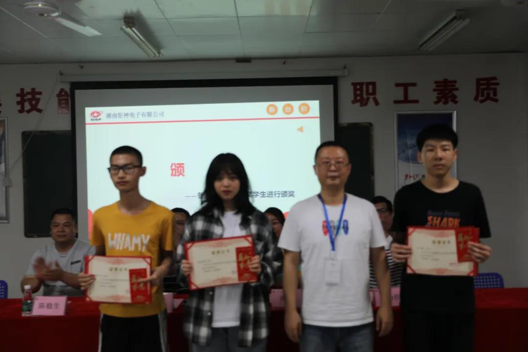 郴州技師學(xué)院實習(xí)帶隊老師陳穩(wěn)生、廖宇、周宇,企業(yè)代表人事部唐俊峰、肖功桂及100余名實習(xí)生參與了本次表彰。